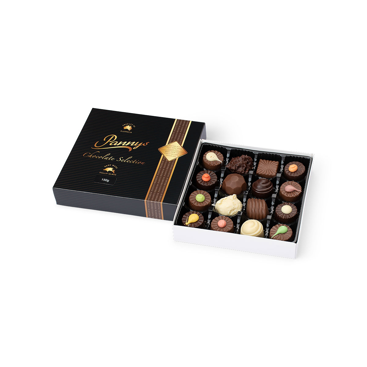 A beautifully gift boxed selection of creams, nuts, roughs and Pannys signature white truffle make this a great introduction to Panny’s skills as a chocolate maker.